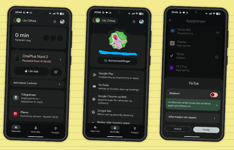 NB: Har du iOS dingser eller Mac til dine barn så har de også en løsning for styring av barnas skjermtid og innhold, men jeg kan ikke noe om det, så jeg bare legger ved en link til Apple og Google her: